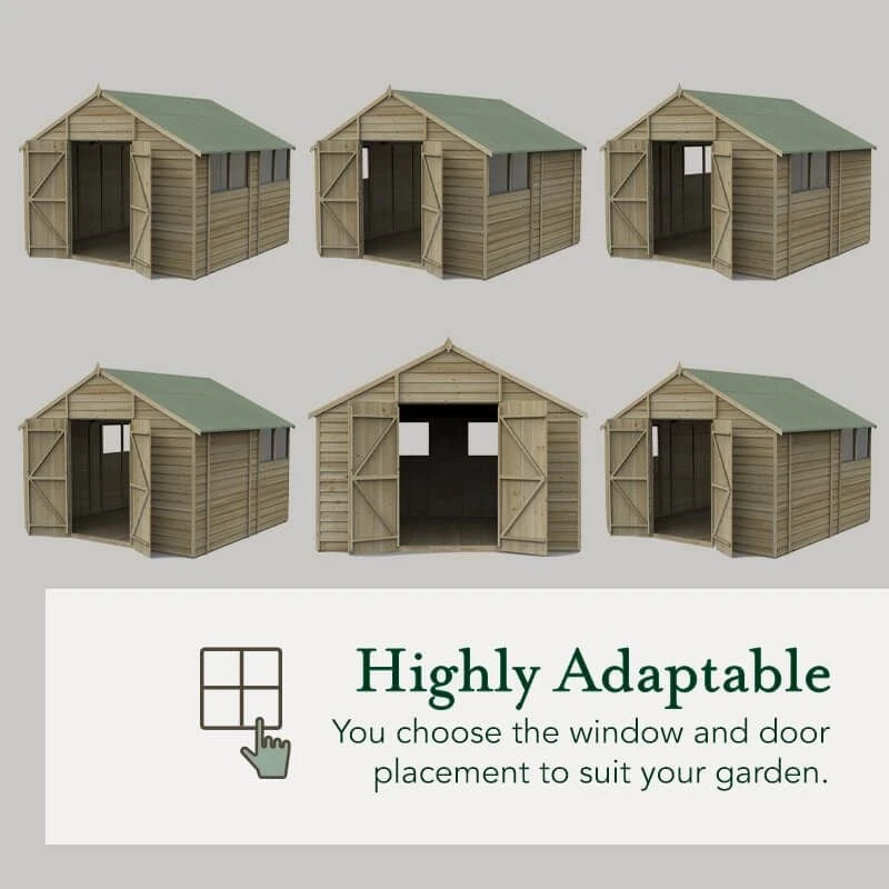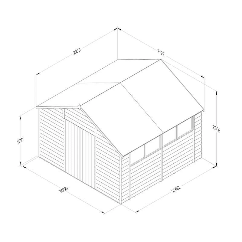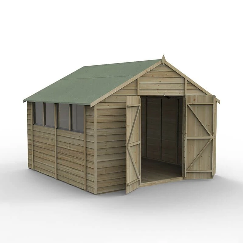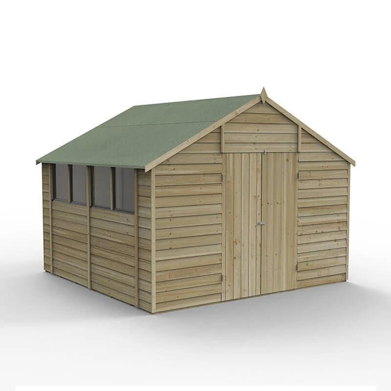 Available in a range of designs and sizes, Forest 4Life™ Overlap Pressure Treated Sheds are beautifully handcrafted here, in Great Britain. Packed full of premium features, they are the best range of overlap sheds Forest has ever made. This particular model is the 10×10 Double Door Apex Shed (3.20m x 3.02m), making it perfectly suited to people requiring secure garden storage or an attractive workshop shed.
