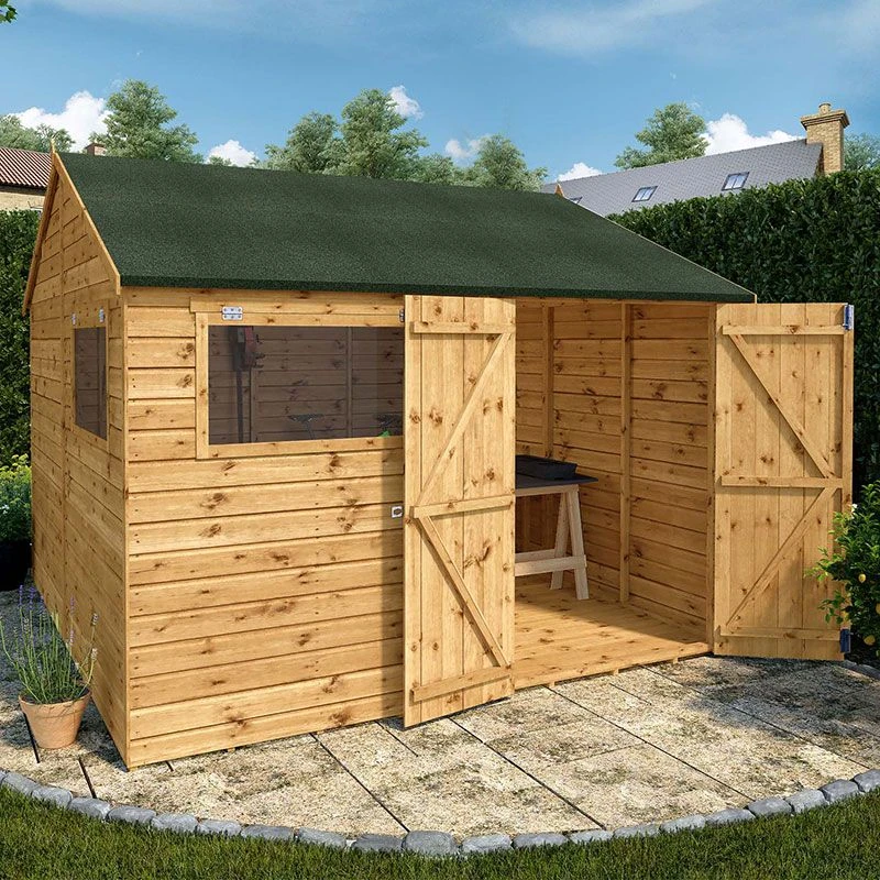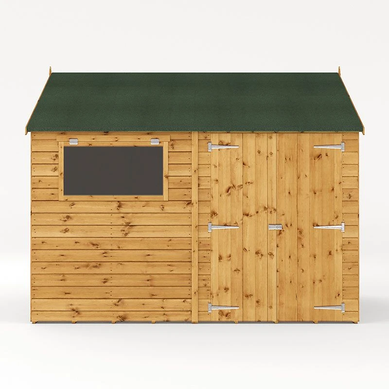 Easier to assemble, offering more flexible garden storage, and far stronger than a standard wooden shed, the 10 x 10 Mercia Shiplap Reverse Apex Workshop (3.2m x 3m) boasts a smart modular design, is built in Great Britain and supplied with a superb 10-year guarantee.