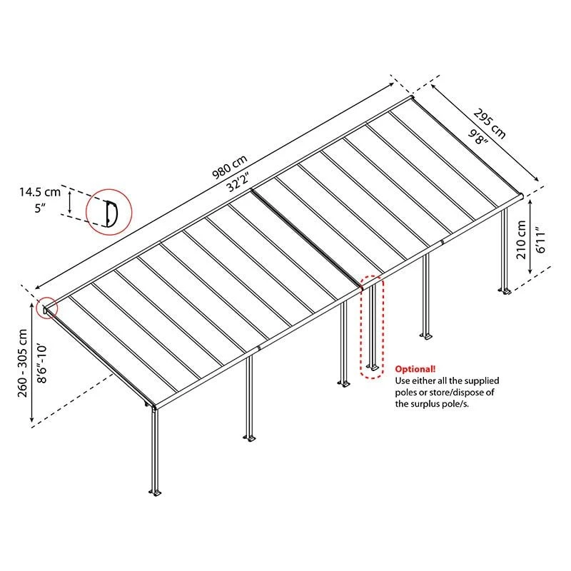 Perfect for spending lazy afternoons in your garden, the 10 x 32 Palram Canopia Olympia Grey Patio Cover with Clear Panels (2.94m x 9.80m) boasts a smart, contemporary design, offers supreme weatherproof protection and comes with a superb 12-year limited warranty.