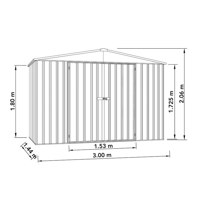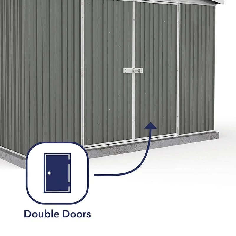 Boasting a very attractive design, SNAPTiTE easy assembly and remarkable 30-year anti-rust warranty, the 10 x 5 Absco Regent Double Door Metal Shed in Grey (3m x 1.44m) is certain to meet even our most discerning customers’ storage requirements.