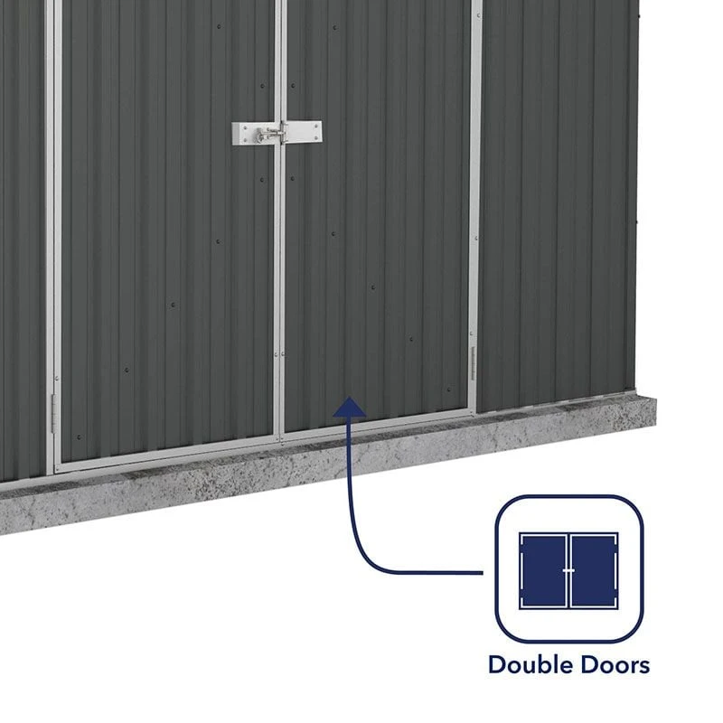 Boasting a contemporary design, patented SNAPTiTE technology and remarkable 30-year anti-rust warranty, the 10 x 5 Absco Space Saver Double Door Metal Shed in Dark Grey (3m x 1.52m) is sure to meet even our most discerning customers’ storage requirements.