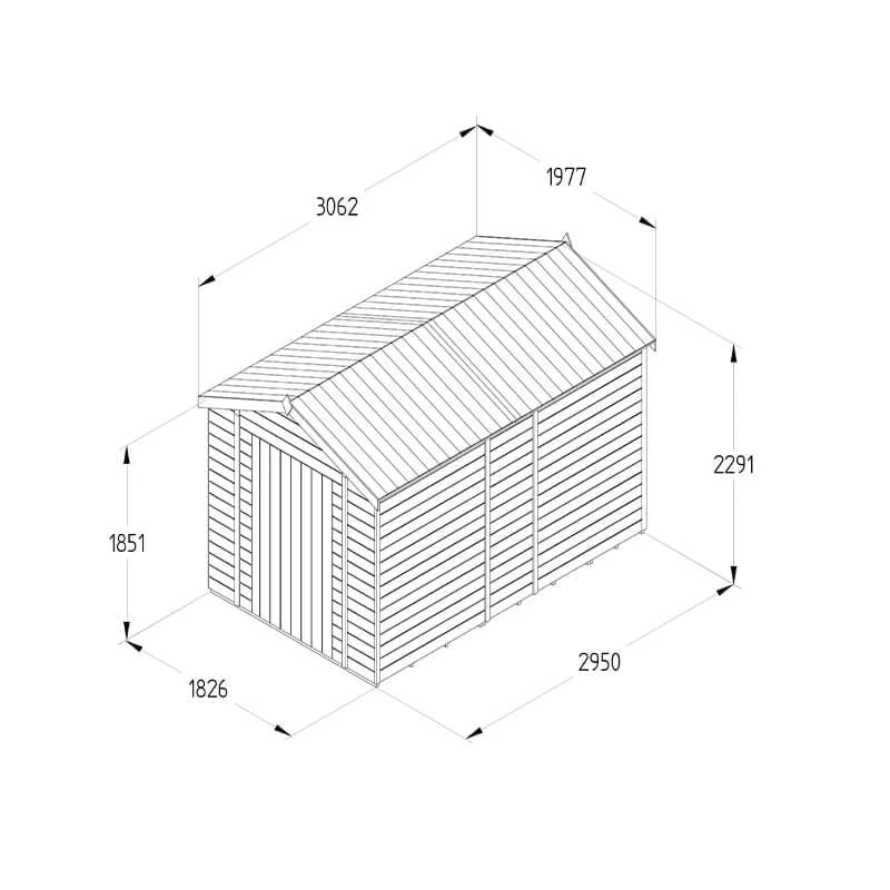 Forest is Britain’s leading manufacturer of wooden sheds and Timberdale is their premier line. It should be your go-to range of sheds when only the best will do. Beautifully handcrafted in the heart of Worcestershire and supplied with a market-leading 25-year anti-rot guarantee, this 10×6 Timberdale Windowless Apex Shed (3.06m x 1.98m) makes an excellent choice if you require secure, general-purpose garden storage.