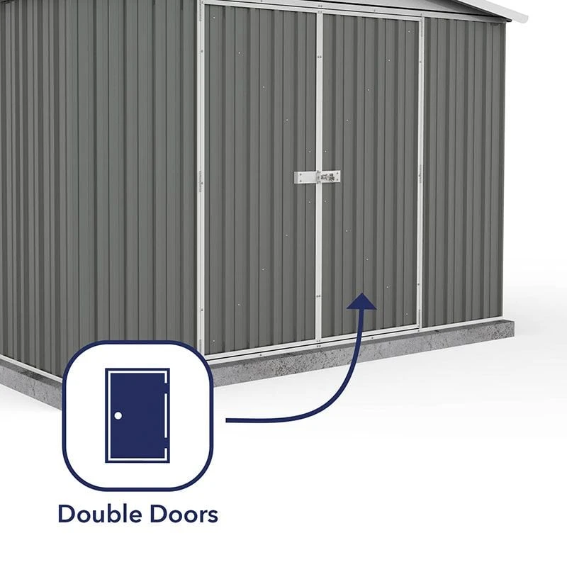 Boasting a very attractive design, SNAPTiTE easy assembly and remarkable 30-year anti-rust warranty, the 10 x 7 Absco Regent Double Door Metal Shed in Grey (3m x 2.18m) is certain to meet even our most discerning customers’ storage requirements.