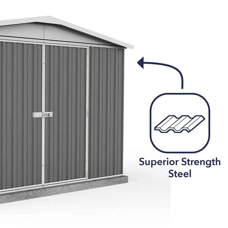 This metal shed is proudly built in Australia from Bluescope high-tensile steel, so is completely weatherproof and impervious to rust. 100% pest proof and fire retardant too, this premium shed will neither blister, swell nor warp. It offers you exceptionally robust and durable garden storage, and will maintain its attractive appearance for decades to come.