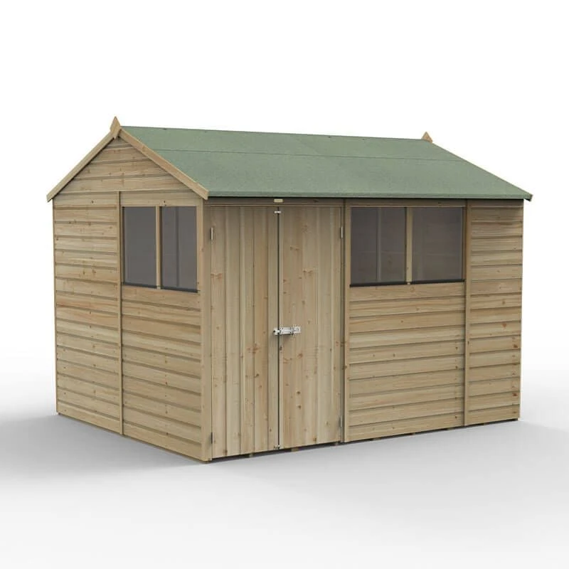 If you want to buy a Great British shed that offers more than just plain, old garden storage, choose a Forest Beckwood 25yr Guarantee Shiplap Pressure Treated Shed. A weather beating home for your tools, bicycles, fishing tackle and more, this particular model is the 10×8 Double Door Reverse Apex Shed (3.01m x 2.61m), so there’s nothing to stop you using it as a garden workshop too. Here’s what else makes this Beckwood shed special…