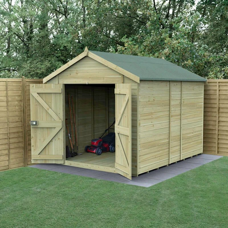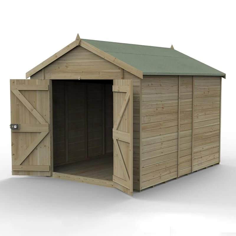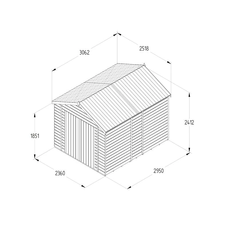 Forest is Britain’s leading manufacturer of wooden sheds and Timberdale is their premier line. It should be your go-to range of sheds when only the best will do. Beautifully handcrafted in the heart of Worcestershire and supplied with a market-leading 25-year anti-rot guarantee, this 10×8 Timberdale Windowless Double Door Apex Shed (3.06m x 2.52m) makes an excellent choice if you require secure, premium-quality garden storage.