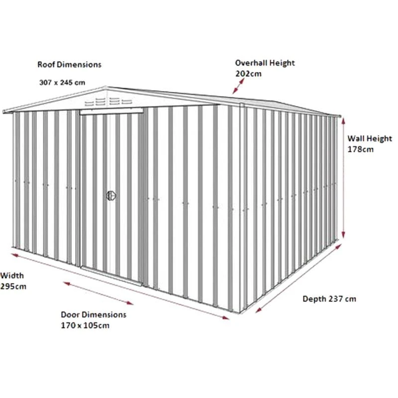 This garden shed is manufactured from hot-dipped galvanised steel throughout for an incredibly sturdy and robust build. Unlike traditional wooden garden sheds, this metal shed requires minimal if any maintenance and is rust, rot and rodent proof – saving you time and money. A 15 year anti-rust warranty supports this premium quality construction (+ 1-year manufacturer’s structural warranty).