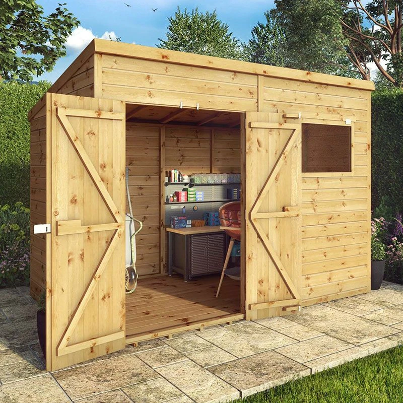 Impeccably designed, built in Great Britain and supplied with a superb 10-year guarantee, the 10 x 8 Mercia Shiplap Pent Shed (2.9m x 2.4m) offers you first-class garden storage for your tools and equipment.