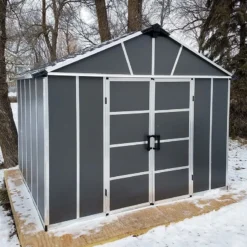 Expertly constructed from high-specification materials, offering complete weatherproof protection and supplied with an impressive 15-year warranty, the 11×9 Palram Canopia Yukon Dark Grey Skylight Plastic Shed with WPC Floor (3.3m x 2.7m) provides robust, durable and stylish garden storage for your tools and outdoor equipment.
