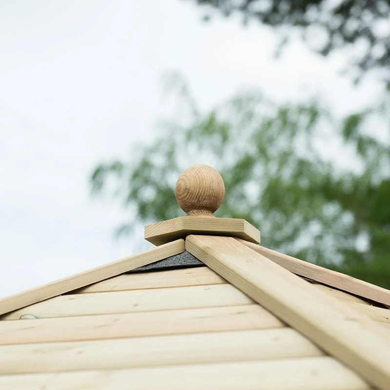 The superior wood used to construct this garden gazebo is all FSC®-certified, kiln-dried pine, which is the only wood certification scheme endorsed by the major environmental charities. Built by hand in the UK, this wooden gazebo has been pressure-treated to prevent rot and enjoys a superb 15-year anti-rot guarantee, so no further treatment is required, saving you money and leaving you more time to do the things you enjoy. A careful smooth sanded finish rounds off a beautiful appearance.