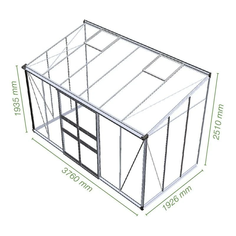 You can purchase a model of this aluminium greenhouse in 3 different sizes, and with a black, green or silver-coloured frame; the choice is entirely yours. Should you desire, there’s an option to upgrade to 6mm polycarbonate glazing on any of these models. If you wish to customise your new greenhouse, you can also purchase some great greenhouse accessories, including an automatic vent arm and 2-tier potting bench.