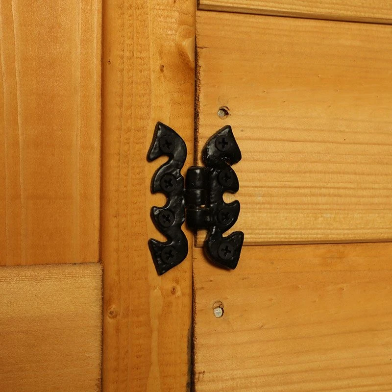 - Ornamental hinges on the greenhouse door