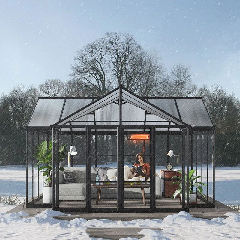 - Features 4mm polycarbonate roof panels, acrylic side panels, a heavy-duty, powder-coated aluminium frame and galvanised steel perimeter base