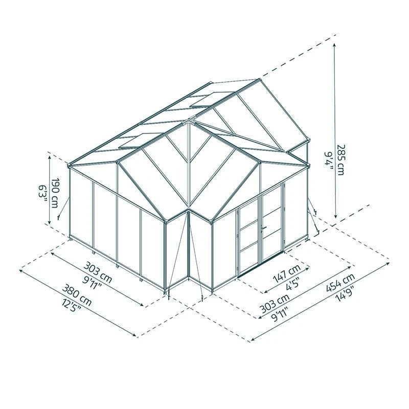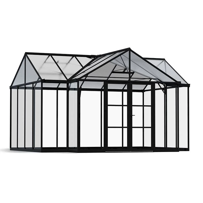 An idyllic garden retreat in which to relax, and ideal for use as a greenhouse too, the versatile 14’9 x 12’5 Palram Canopia Triomphe Orangery Enclosed Garden Gazebo (4.54m x 3.8m) features an eye-catching design, high-specification build and impressive 10-year limited warranty.