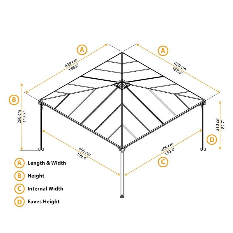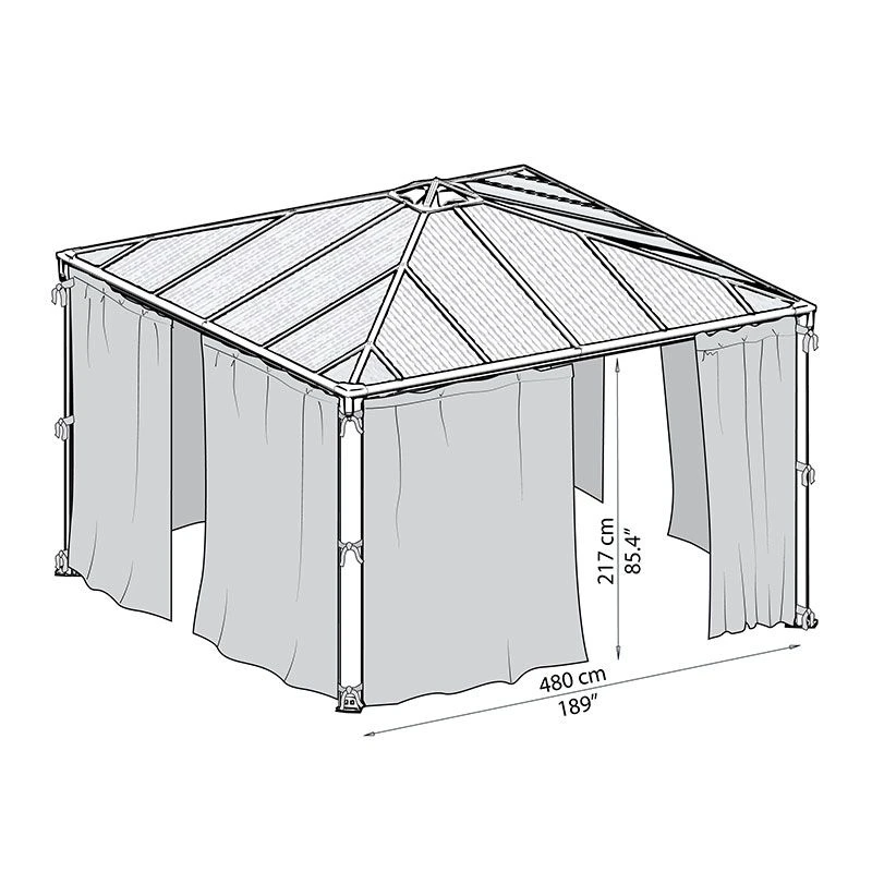 Oozing contemporary style and designed with plenty of clever features, the premium 14×14 Palram Canopia Palermo 4300 Garden Gazebo (4.2m x 4.2m) makes the ideal garden shelter, suitable for any special occasion, and is supplied with a superb 10-year limited warranty.
