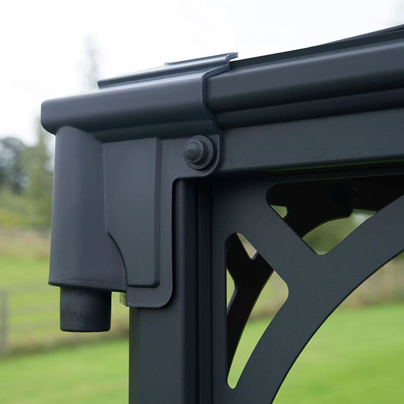 This garden gazebo comes with treated, bronze-tinted 6mm twin-wall polycarbonate roof panels, which transmit natural light while providing shade and blocking harmful UV rays, offering you a beautifully light environment, which is never uncomfortably bright. They provide 15% light transmission, are near-unbreakable and completely UV-protected, so won’t discolour or fade over time and will maintain their gorgeous appearance for many years to come.