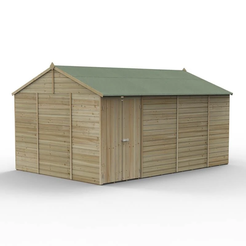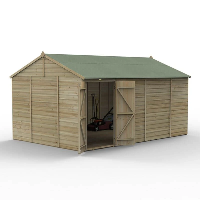 If you want to buy a Great British shed that offers more than just plain, old garden storage, choose a Forest Beckwood 25yr Guarantee Shiplap Pressure Treated Shed. A weather beating home for your tools, bicycles, fishing tackle and more, this particular model is the 15×10 Windowless Double Door Reverse Apex Shed (4.48m x 3.21m), and here’s what makes it special…