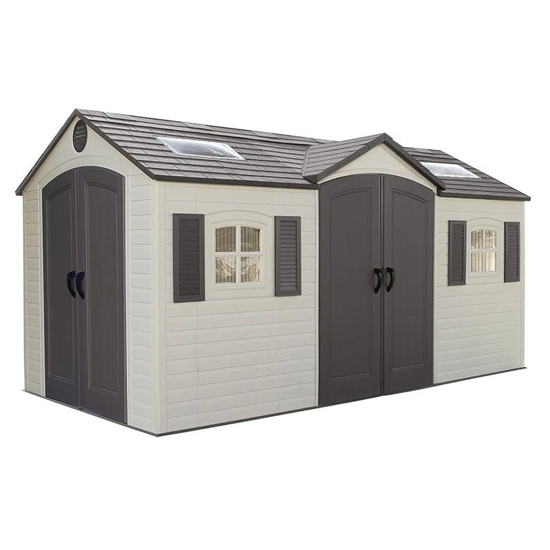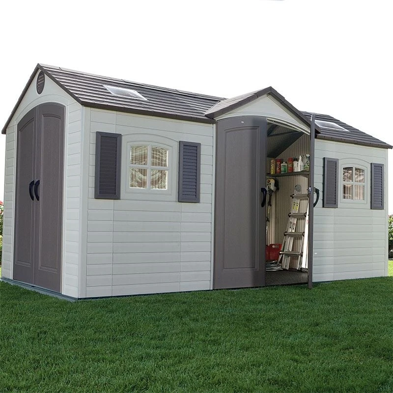 Quality and durability are combined in the construction of our Lifetime 15×8 plastic garden shed. The range of Lifetime sheds is the highest specification range of heavy duty plastic sheds on the market