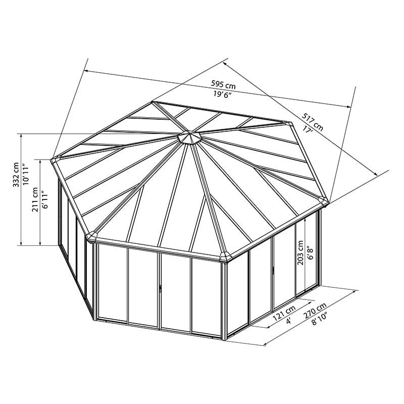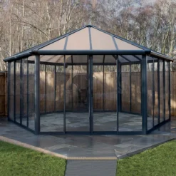 Extend your living space into the garden with the 20×17 Palram Canopia Garda Enclosed Grey Gazebo (6m x 5.1m) – a superior polycarbonate gazebo, offering outstanding weatherproof protection.