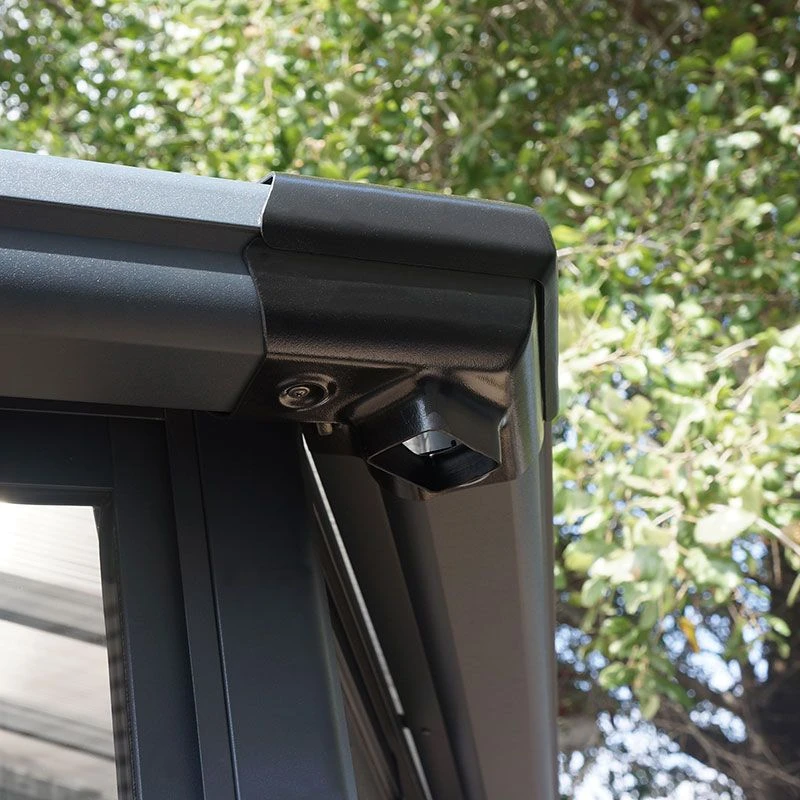 - Treated, bronze-tinted 16mm multi-wall polycarbonate roof panels and crystal-clear 3mm acrylic side panels