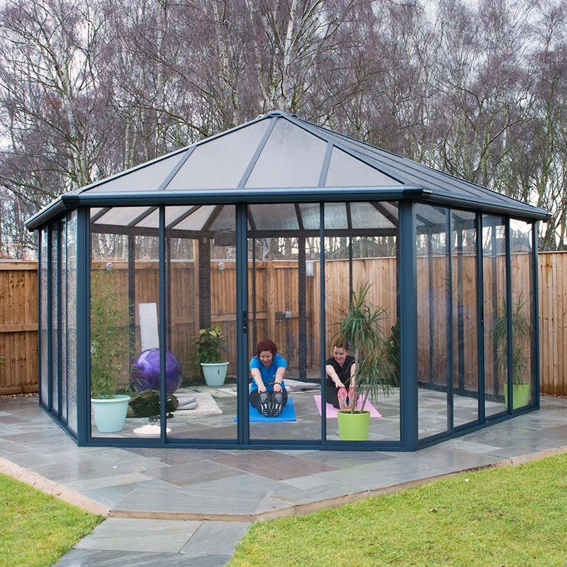 Extend your living space into the garden with this extra-large garden room – a superior polycarbonate gazebo, offering outstanding weatherproof protection.