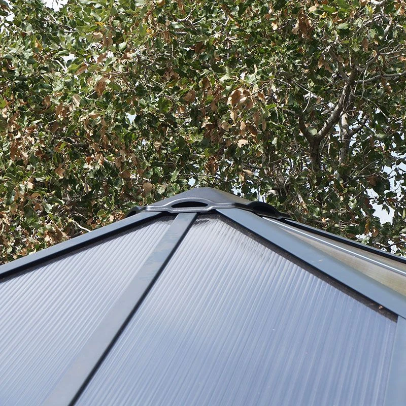Completely constructed from recyclable components, this polycarbonate and aluminium gazebo is completely maintenance-free, saving you money and leaving you with more time to do the things you enjoy. It comes with pre-cut panels, pre-drilled profiles and fixings to help you achieve a straightforward installation. The screw-free sliding panel assembly system ensures the gazebo will always remain watertight.