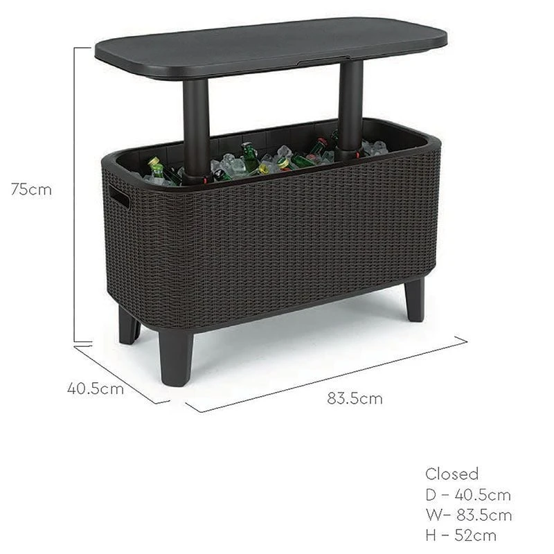 A wonderful addition to garden parties and BBQs, the 3 x 1 Keter Bevy Bar (0.84m x 0.41m) is intelligently designed, aesthetically pleasing and made to last.