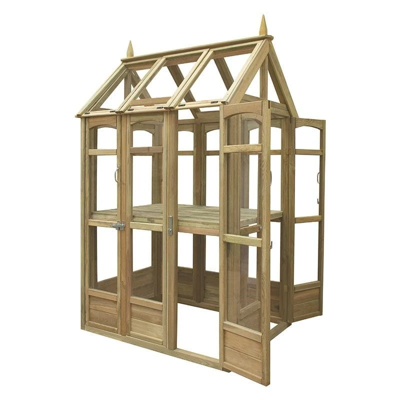 Designed with a traditional apex roof, this wooden greenhouse is fitted with no less than 4 doors, all with latches, which allow you to nurture your plants without actually entering the greenhouse.