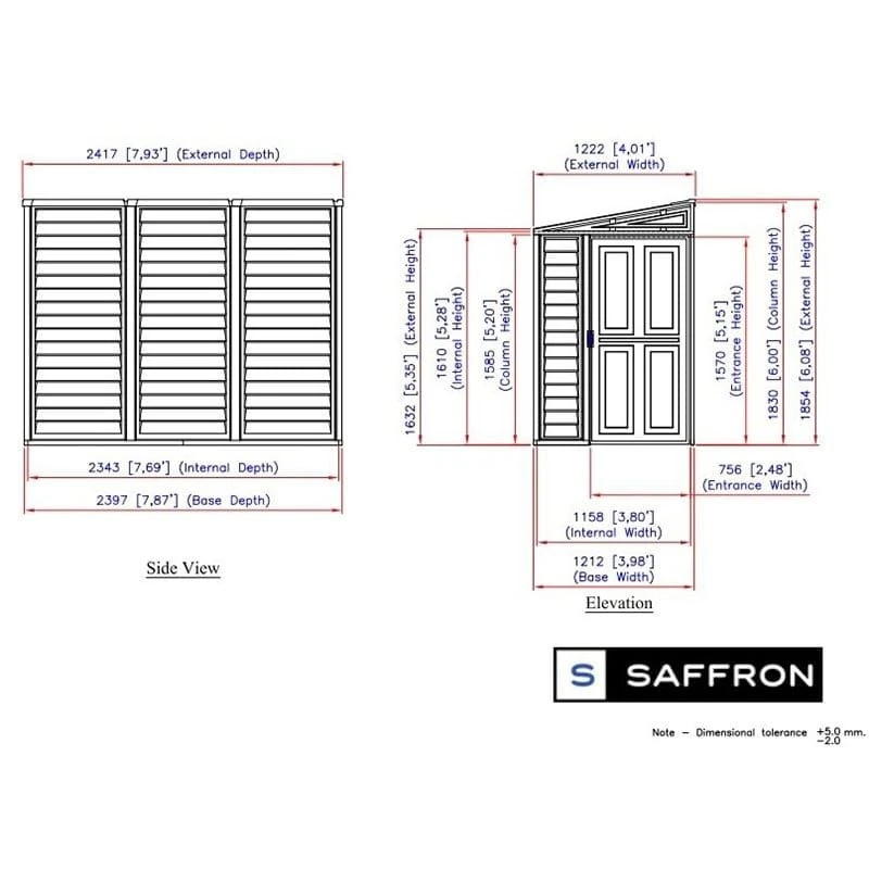 Low-cost and low-hassle, but extremely high on quality and backed by an impressive 10 year guarantee, the 4 x 8 Saffron Lean To Plastic Vinyl Shed (includes foundation kit) is perfectly designed to snugly sit next to your house, making it an incredibly convenient garden storage shed.