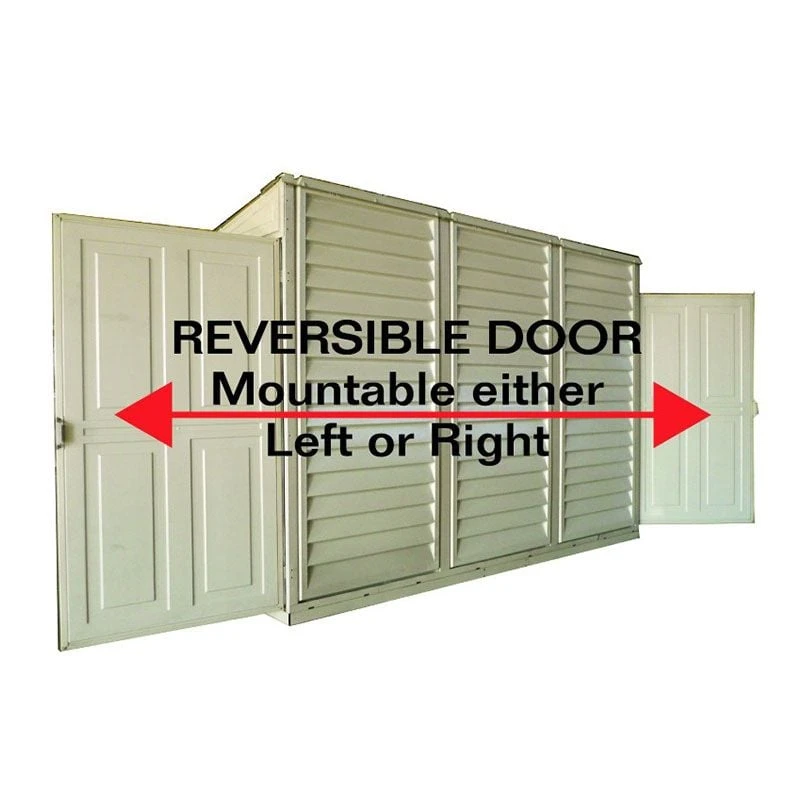 This garden shed is expertly built from premium-grade PVC, supported by a rust-resistant, hot-dipped galvanised steel frame, ensuring a robust, durable and fire-retardant structure.