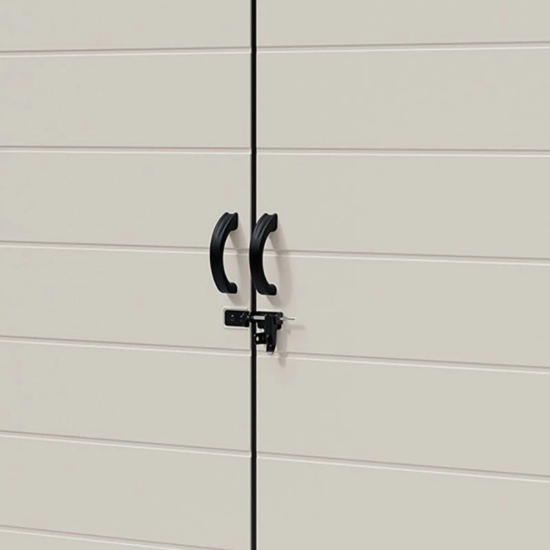 You can gain very easy access to your stored items via wide double doors. Padlockable handles, upper and lower door latches, along with an additional metal slide latch, ensure your valuable tools are kept safe from unwanted attention (padlock not included).