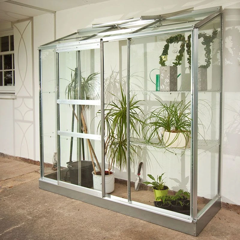 The greenhouse features a single 588mm wide smooth-glide sliding door and a roof vent. The glazing is 3mm horticultural glass as standard. We do recommend the optional upgrade to toughened glass as this will improve performance and safety.