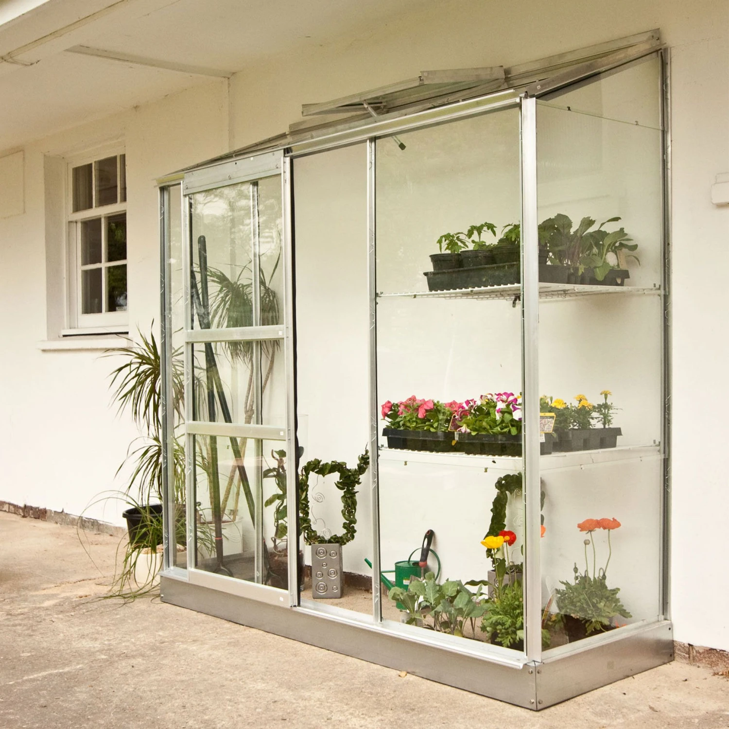 Perfect for a small garden or a budding gardener, this 6×2 greenhouse fits neatly up against a wall for a space-saving design.