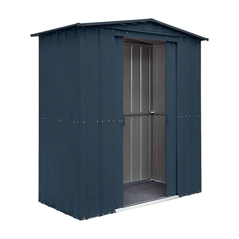 This particular model of metal shed is available in anthracite grey, heritage green, and a range of sizes.