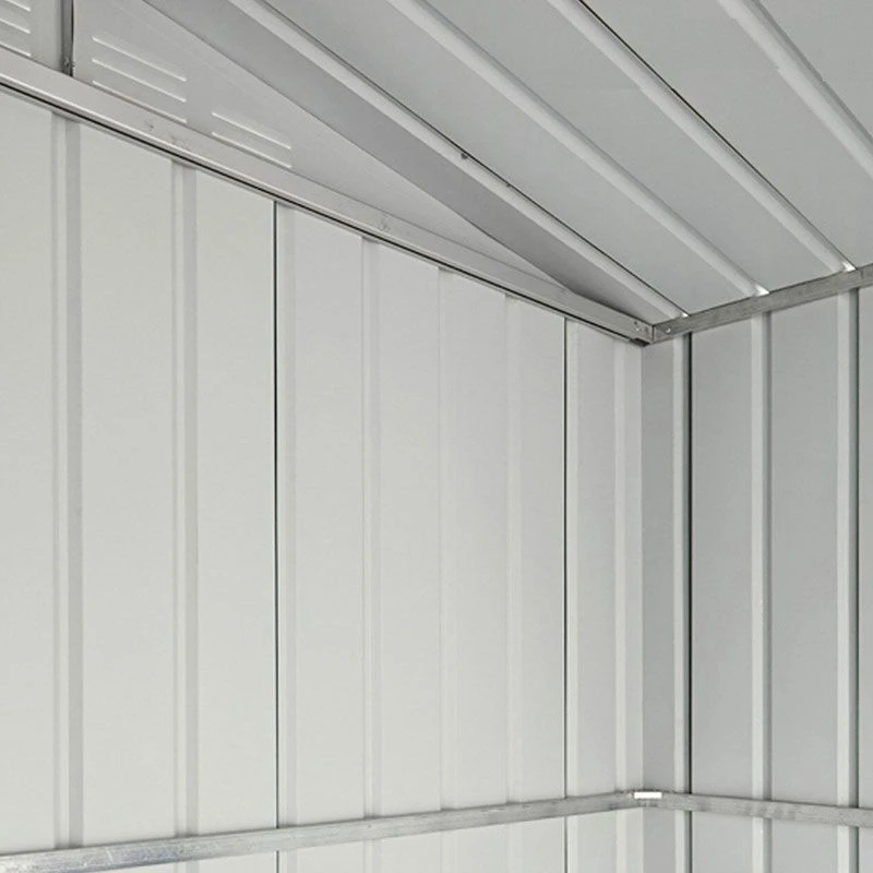 This ground-breaking garden shed is built from lightweight, hot-dipped galvanised steel, supported by a heavy-gauge galvanised steel frame, sturdy base rails and superior bracing throughout. Impervious to rust, the elegant apex roof and exquisite grey painted finish ensure that this premium garden shed doesn’t just boast brawn but beauty too.