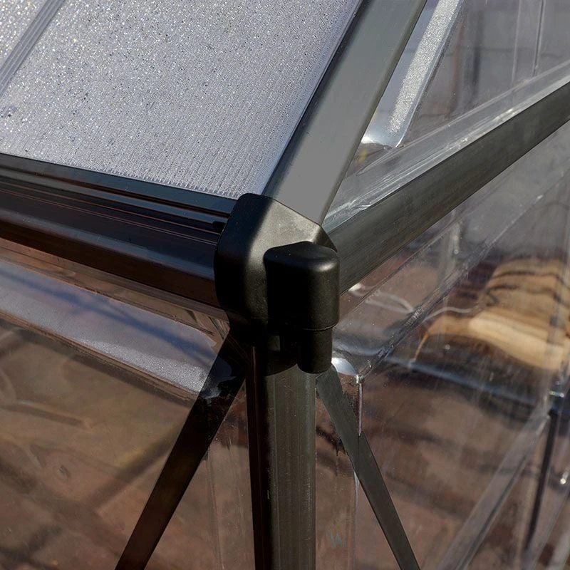 Intelligently designed and brimming with high-specification features to help your plants prosper, the 6×4 Palram Canopia Hybrid Grey Polycarbonate Greenhouse (1.8m x 1.2m) is easy-to-assemble, built to last and completely maintenance-free.