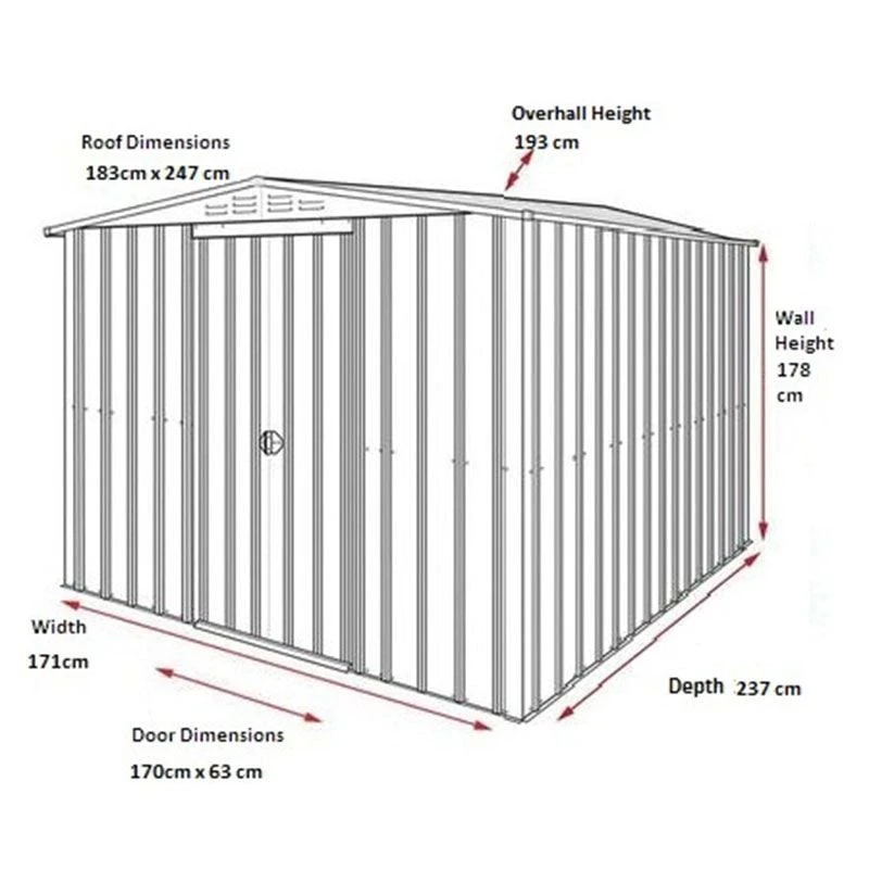 With dimensions of 193cm x 184cm x 247cm, this 6×8 shed is supplied with a straightforward instruction manual, video guide and on-hand technical support to help you achieve a simple, stress-free assembly.