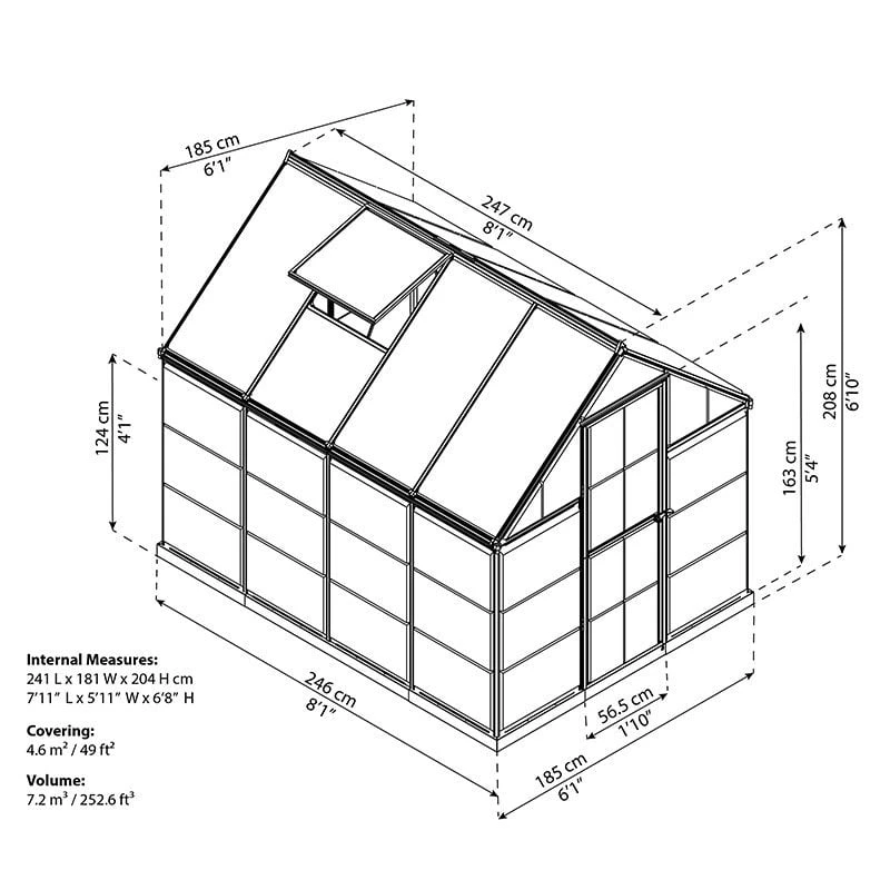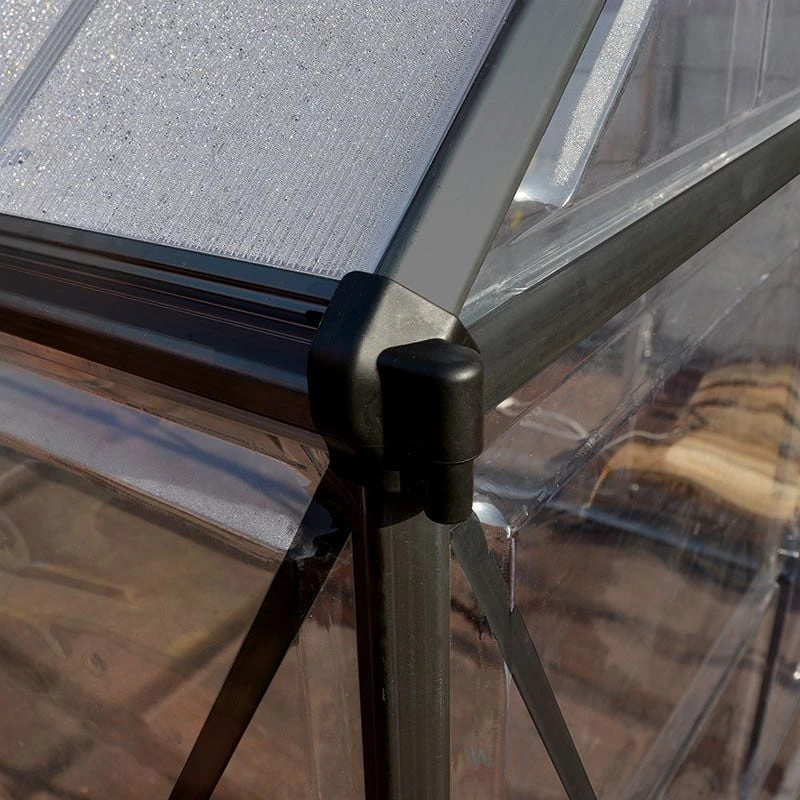 Intelligently designed and brimming with high-specification features to help your plants prosper, the 6×8 Palram Canopia Hybrid Grey Polycarbonate Greenhouse (1.85m x 2.41m) is easy-to-assemble, built to last and completely maintenance-free.