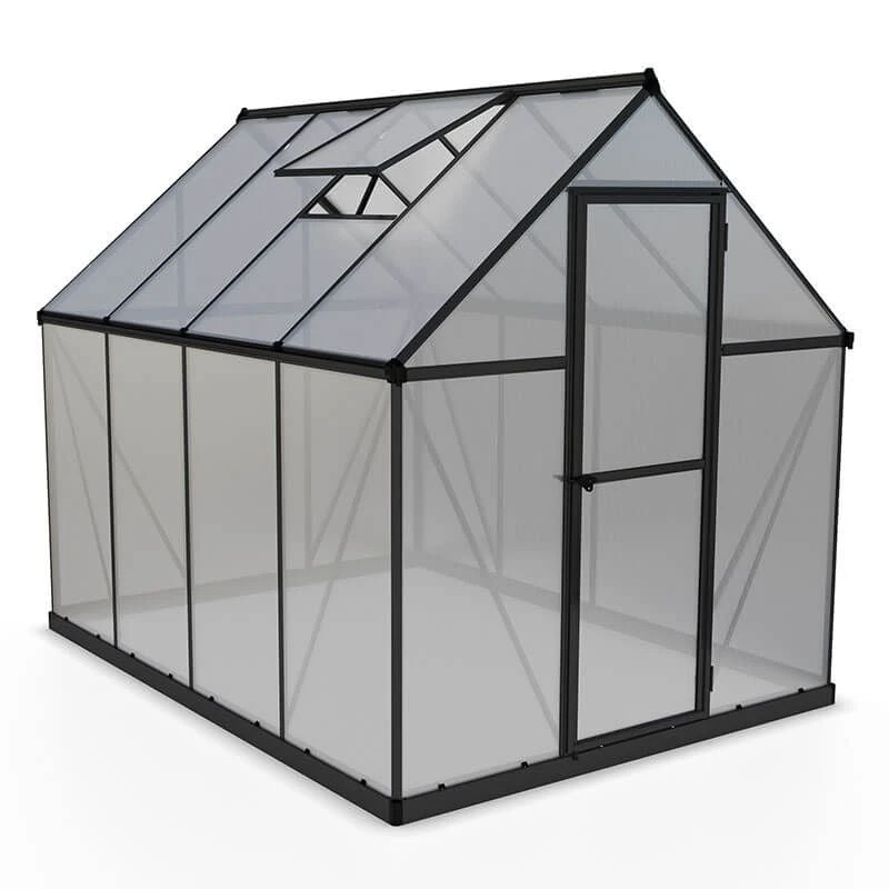 If you want to grow your own fruit and vegetables the easy way, choose the high-spec, low fuss 6×8 Palram Canopia Mythos Grey Greenhouse (1.85m x 2.47m) – a traditionally-designed glasshouse, but made from maintenance-free, shatterproof polycarbonate.
