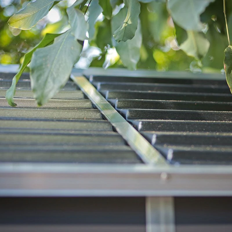 The roof’s unique polycarbonate skylight panels allow a soft natural light to filter into the shed, which is invaluable when you’re storing or retrieving items. However, it remains externally opaque to maintain privacy and keep your valuable tools safe from unwanted attention. Together with the shingle-style design, this also enhances the grey shed’s handsome exterior appearance.