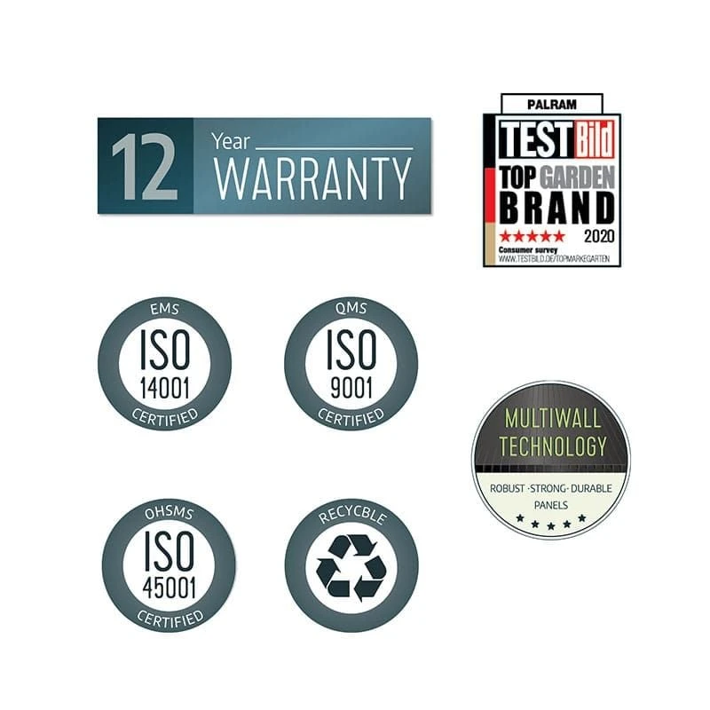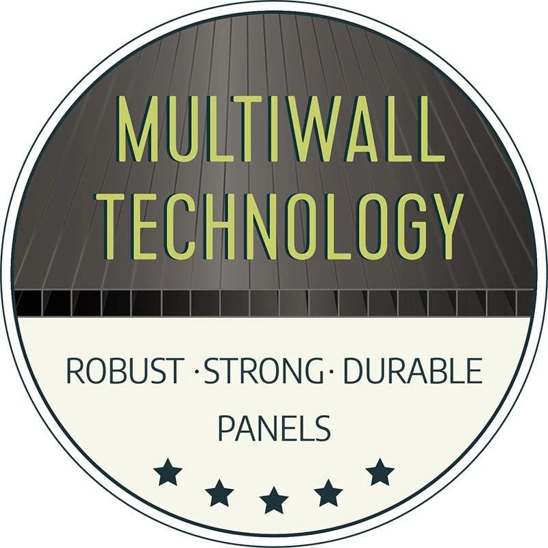- 10mm multi-wall polycarbonate panels on a robust metal frame