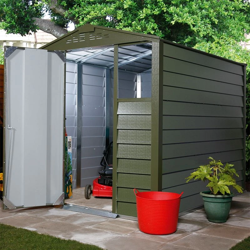 This metal shed boasts both beauty and brawn. Olive green in colour, it is sure to complement the rest of your garden; made from PVC-coated galvanised metal, you can rest assured that it is tough and will remain rust free.