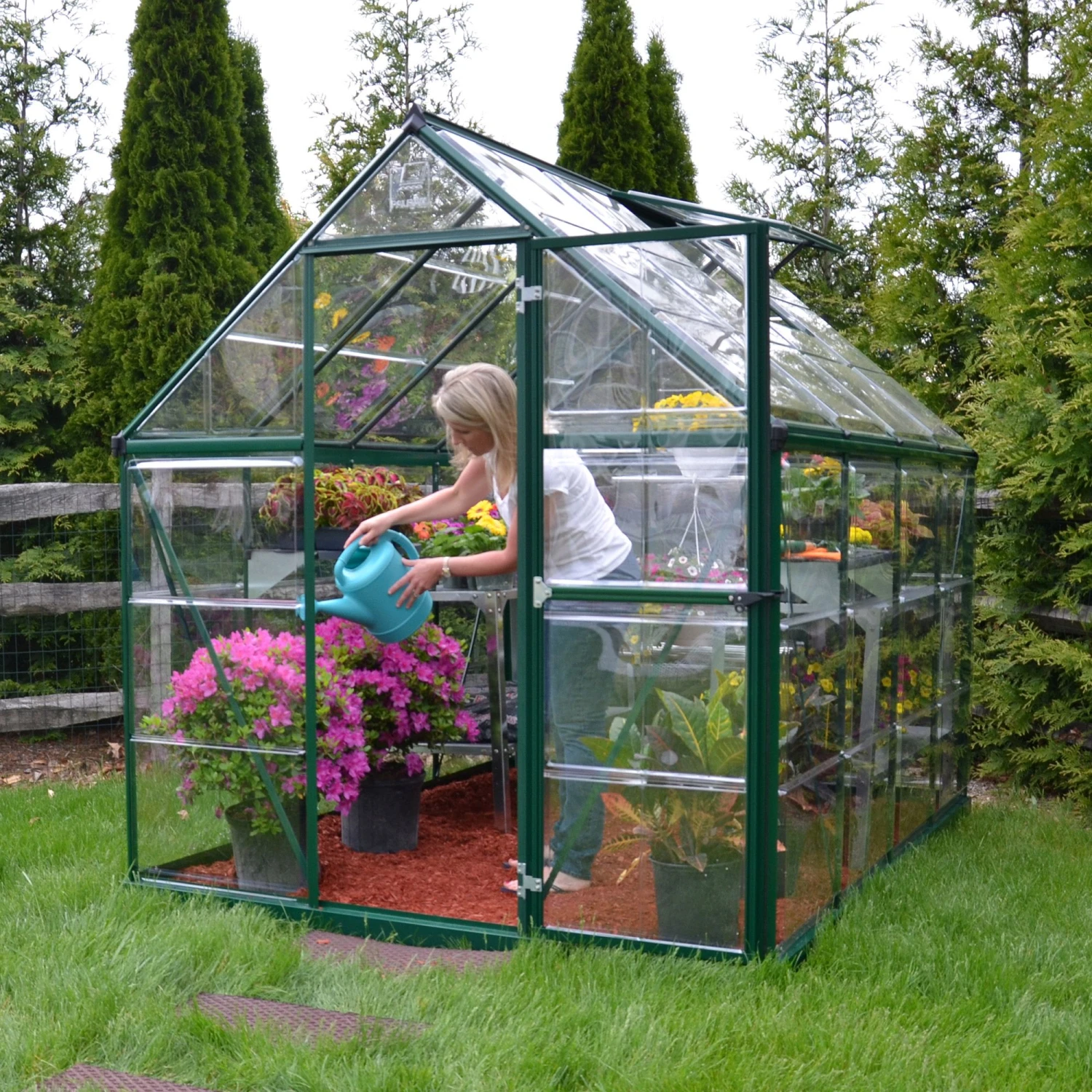 Offering the perfect environment for your plants to thrive, and near-unbreakable too, the 6×8 Palram Canopia Harmony Green Polycarbonate Greenhouse (1.85m x 2.47m) combines a traditional design with high-specification materials throughout.
