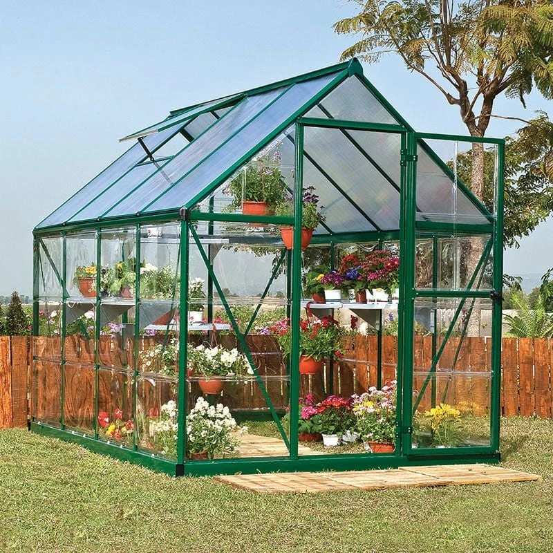 Intelligently designed and brimming with high-specification features to help your plants prosper, this 6×8 green-framed polycarbonate greenhouse is easy-to-assemble, built to last and completely maintenance-free.