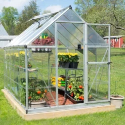 If you want to grow your own fruit and vegetables the easy way, choose this high-spec, low fuss 6×8 greenhouse – an attractive, silver-framed glasshouse, made from maintenance-free, shatterproof polycarbonate.
