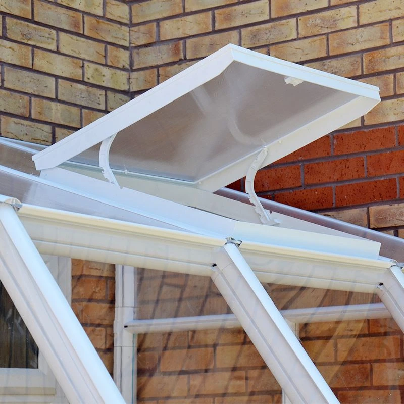- 4mm twin-wall polycarbonate roof panels and 3mm crystal-clear polycarbonate side panels allow 82% light transmission