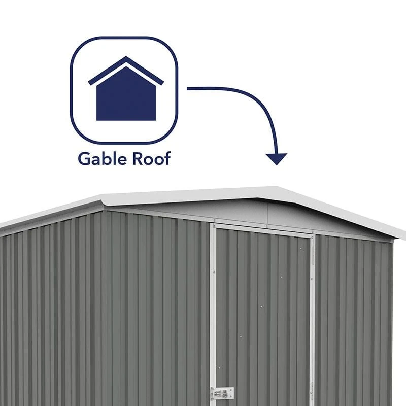 Boasting a very attractive design, SNAPTiTE easy assembly and remarkable 30-year anti-rust warranty, the 7’5 x 7 Absco Regent Apex Metal Shed in Grey (2.26m x 2.18m) is certain to meet even our most discerning customers’ storage requirements.