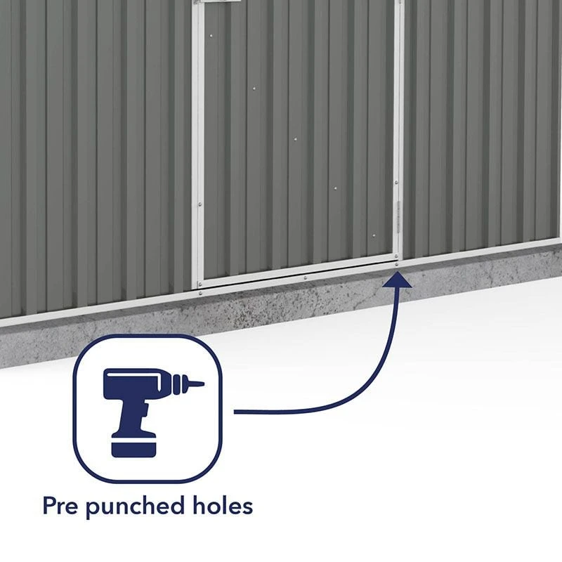 Please be advised that this metal shed is designed without a floor. An anchor kit is available to buy as an optional extra, enabling you to secure the shed to a solid, level base to ensure its stability in adverse weather conditions.