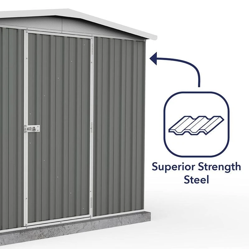 This metal shed is proudly built in Australia from Bluescope high-tensile steel, so is completely weatherproof and impervious to rust. 100% pest proof and fire retardant too, this premium shed will neither blister, swell nor warp. It offers you exceptionally robust and durable garden storage, and will maintain its attractive appearance for decades to come.
