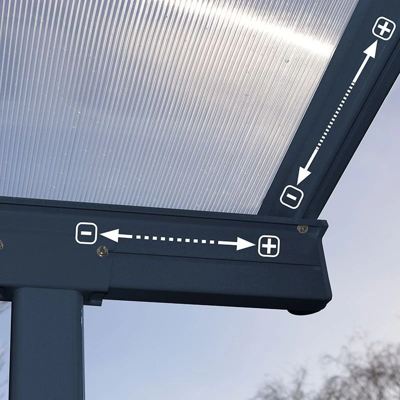Wind resistant to 90km/ hr (56ml/ hr) and snow-load tested to 120kg/ m² (24.6lbs/ ft²), this superior patio awning offers you outstanding weatherproof protection, while the screw-free sliding panel installation system eliminates any risk of leakage.